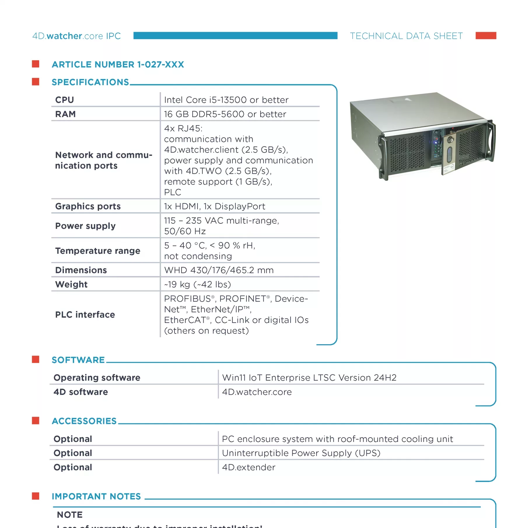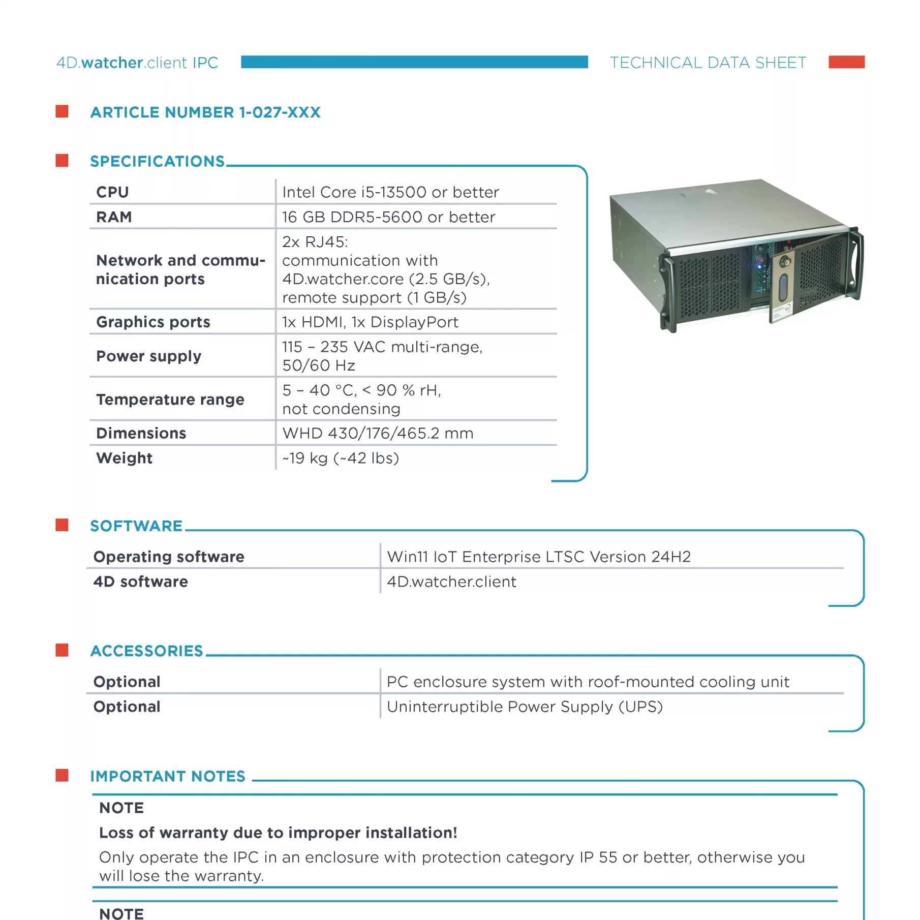 Datenblatt zum IPC des 4D.watcher.core (Backend)