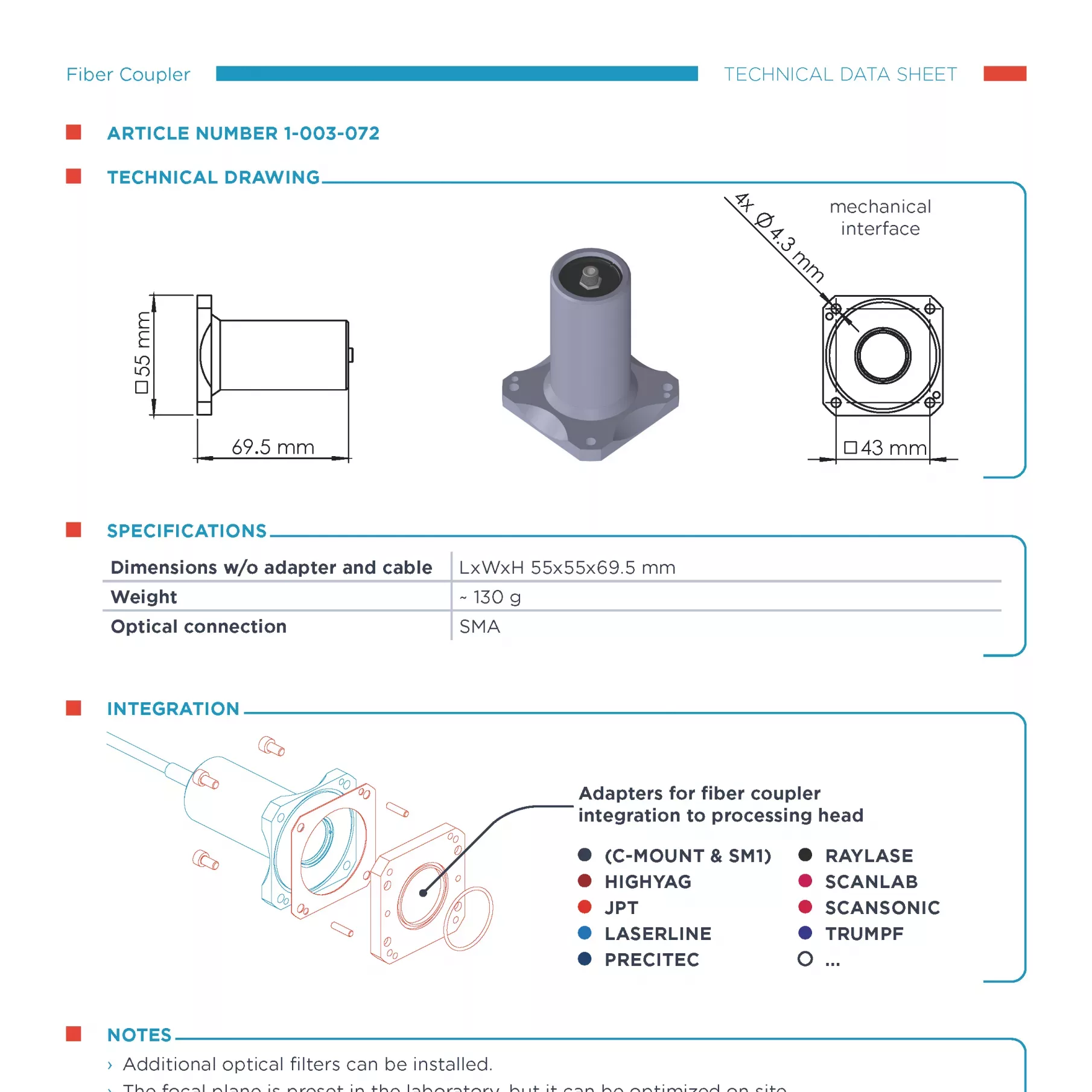 Datenblatt des Faserkopplers