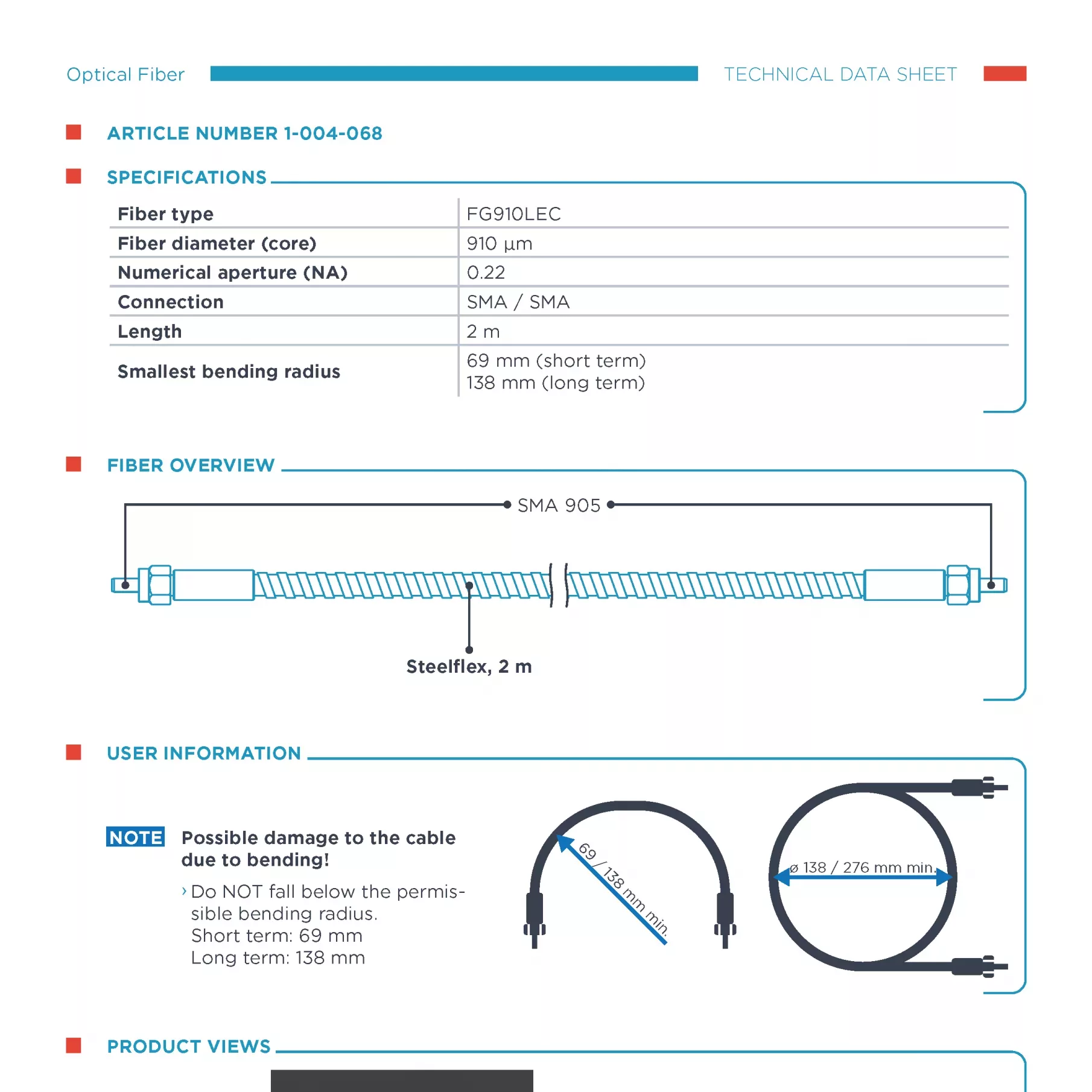 Datenblatt der Lichtleitfaser