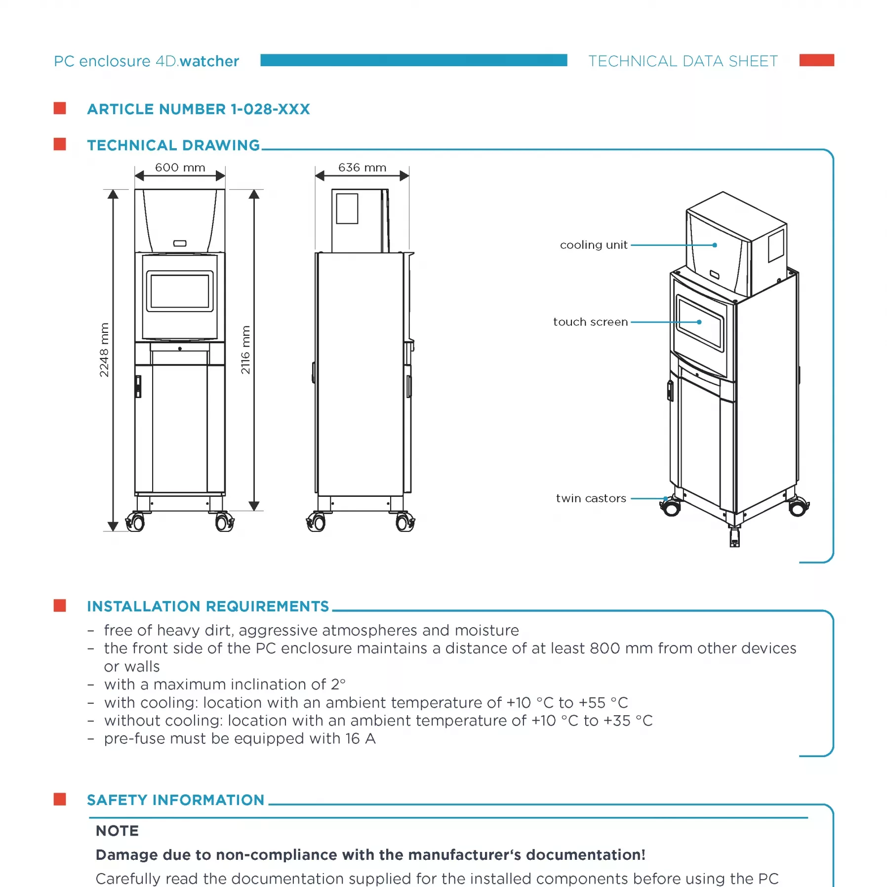 Datenblatt des PC-Schranksystems
