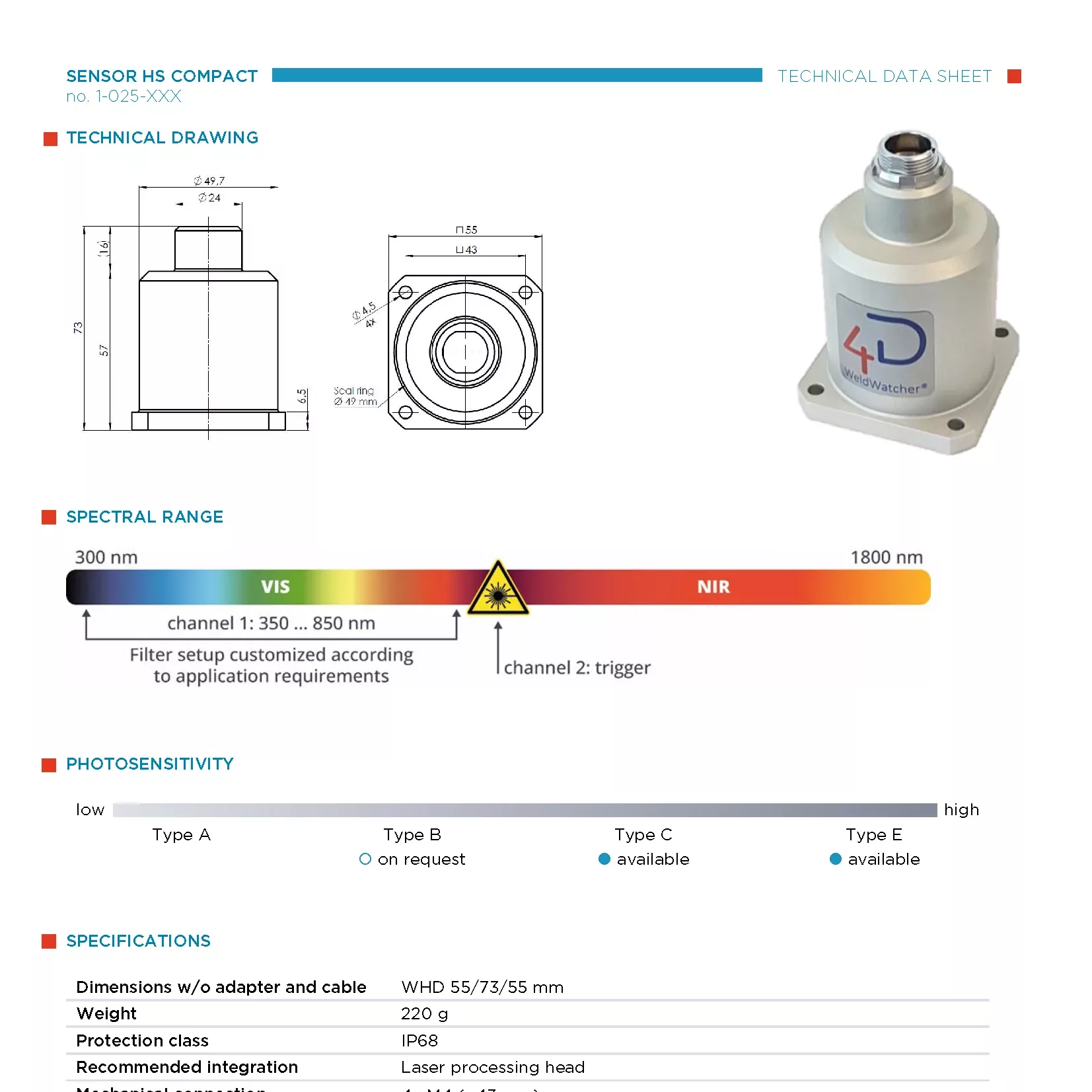 Datenblatt des multispektralen Sensors 4D.TWO® eco