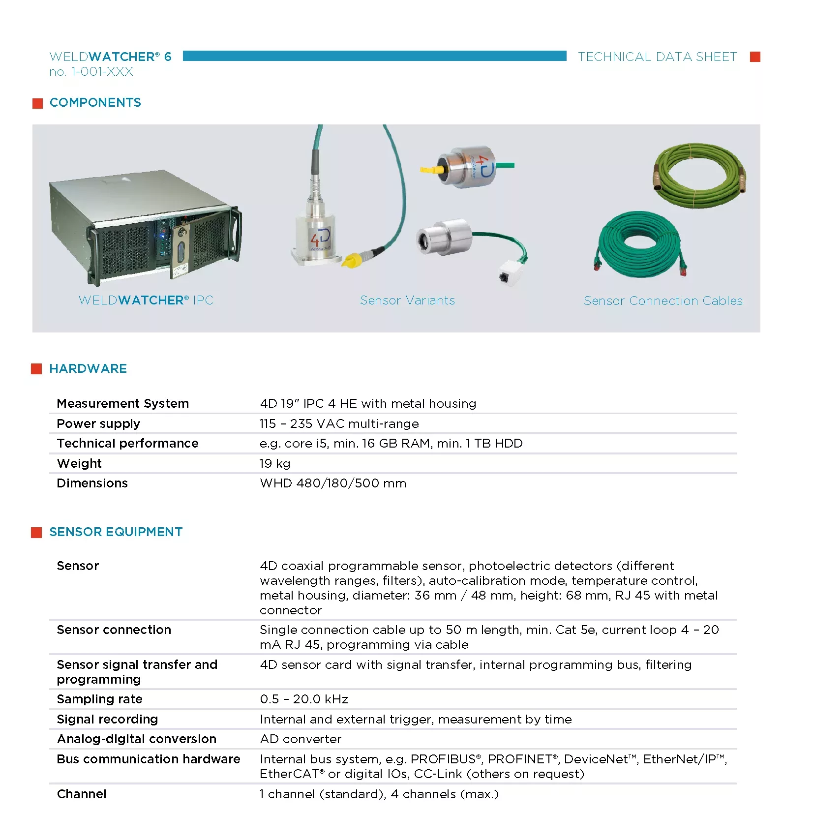 Datenblatt des 4D.watcher-Gesamtsystems mit Artikelnummern